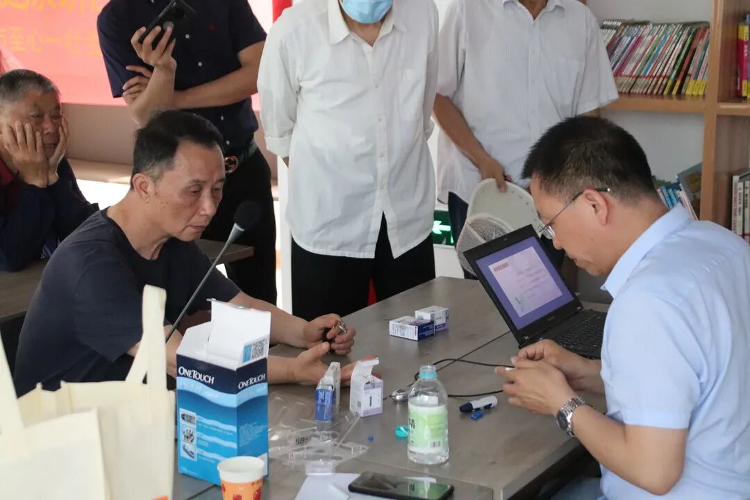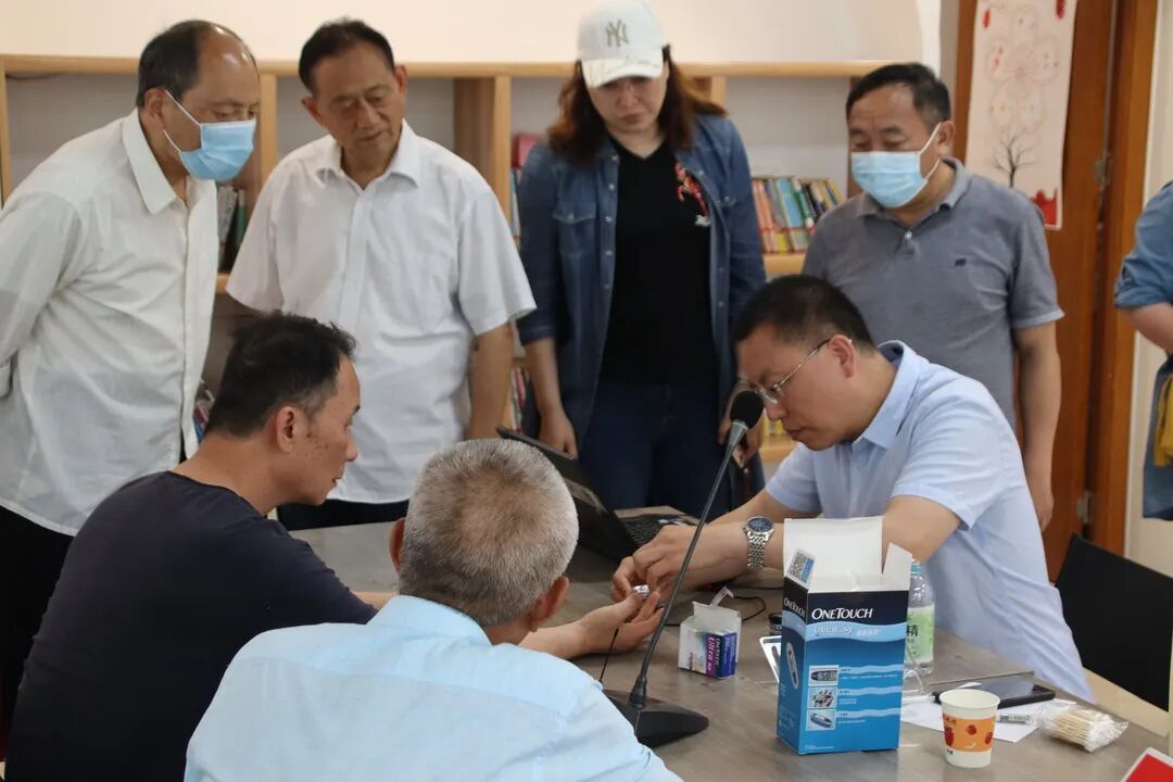 讲座结束,张主任给现场参与者测血糖、看病历、答疑。